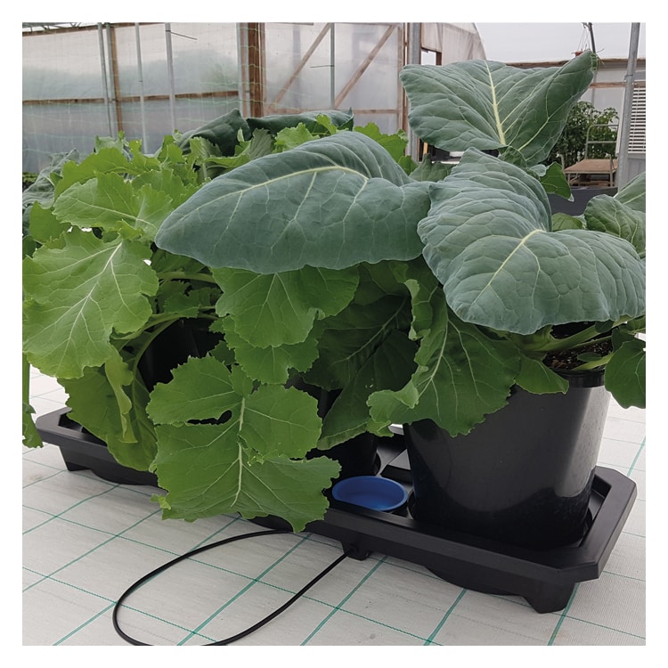 El Auto3 XL mantiene irrigadas nueve macetas plásticas XL de 25L en una única bandeja con tapadera y mide poco más de 1m de largo x 38.5m de ancho. Todo ello alimentado por un único tramo de manguera y una sola válvula. Cultivar con el Auto3 XL aporta ventajas al cultivador en las siguientes tres áreas clave: