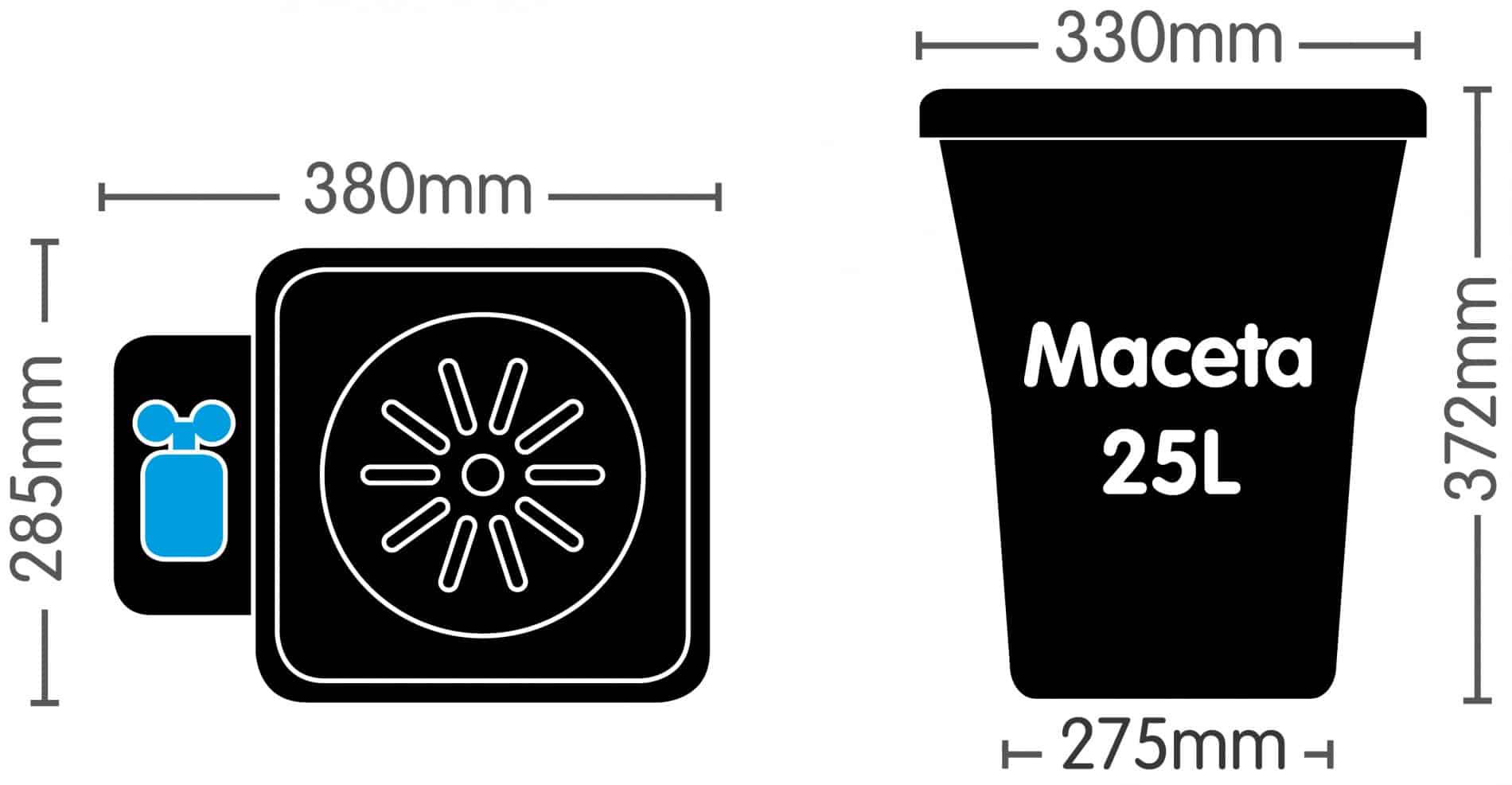 Este original diseño consta de una bandeja redonda que alberga la voluminosa maceta XL de 25 litros. La base redonda permite al cultivador rotar fácilmente macetas con plantas grandes sobre su eje sin tener que moverlas de la bandeja. Ideal para grandes especímenes de plantas, como las matas de arándano o el arce japonés, el 1Pot XL puede usarse como sistema individual o conectarse a depósitos mayores para crear así extensos sistemas de cualquier tamaño o configuración.