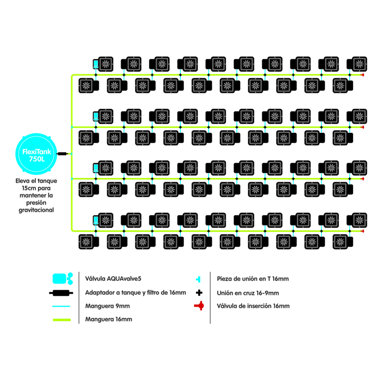 Este sistema versátil puede utilizarse para regar y nutrir tus plantas en casa, en viveros, invernaderos o en el jardín, y ofrece un sistema de riego sencillo y eficiente para todo tipo de cultivos, ya sean comestibles u ornamentales.