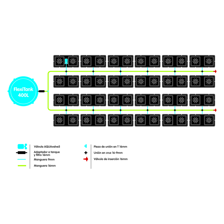 El easy2grow es el sistema de riego de AutoPot más vendido en el mundo. Tanto si se utiliza el kit básico de easy2grow para el jardín o múltiples kits de extensión easy2grow a gran escala comercial, este sistema proporciona alimento fresco y equilibrado para tus plantas durante todo su ciclo vital.